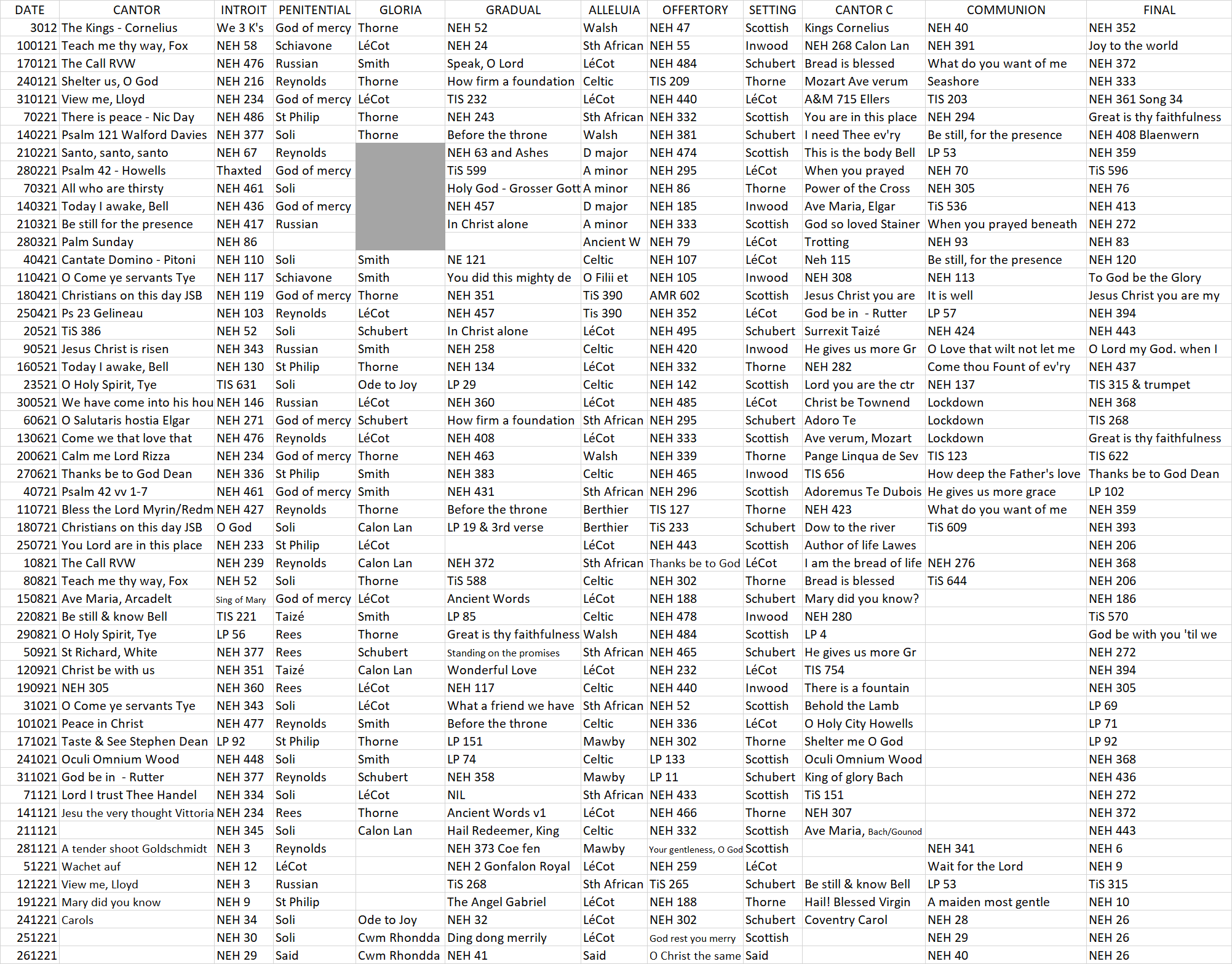 2021 Music List