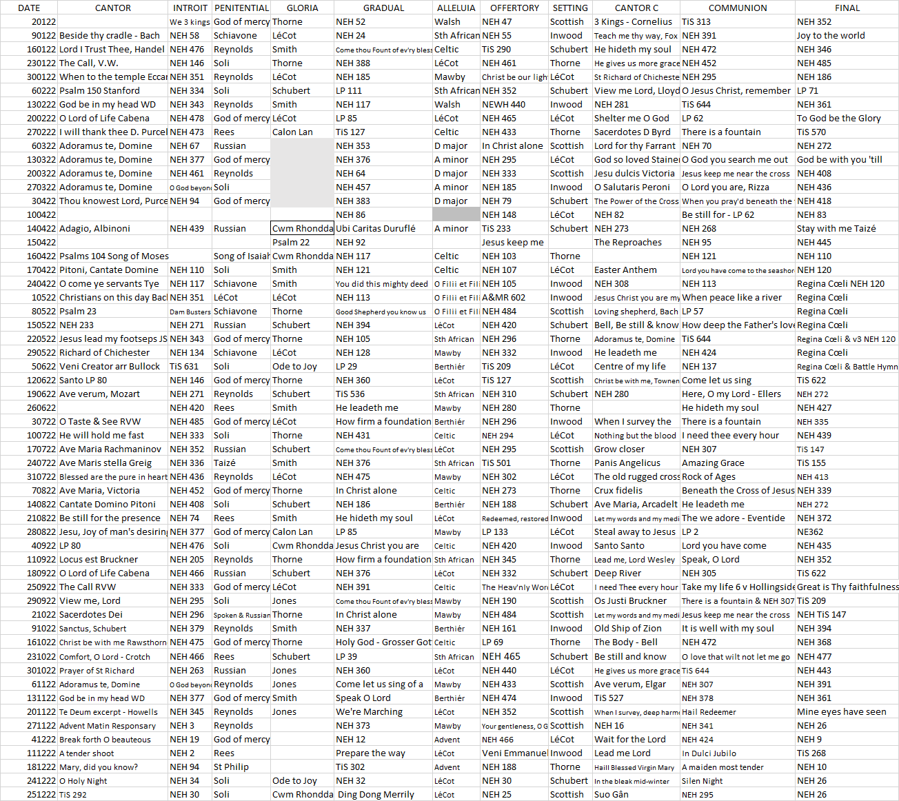 2022 Music List